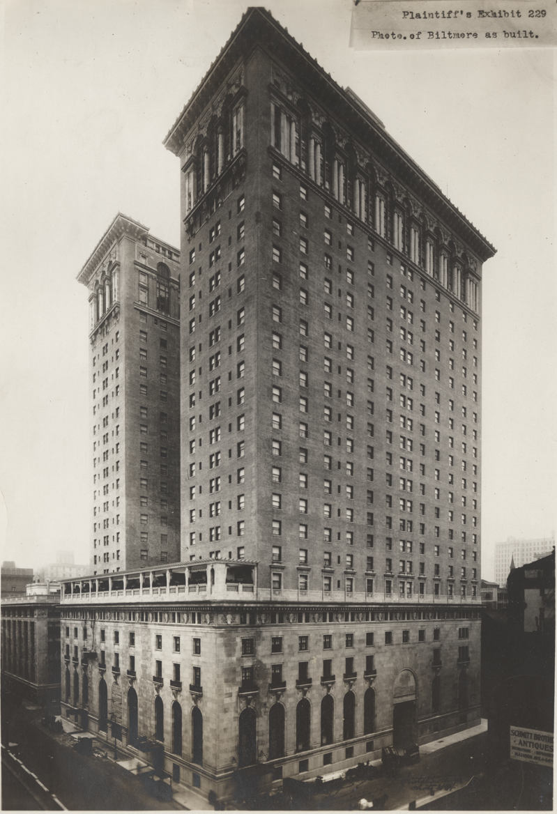 Hotels and apartment hotels – both for travelers and long-term residents – represented the first wave of development of Terminal City. It was a long-established practice for railroads to erect hotels adjacent to their stations as revenue-producing investments. The New York Central planned the huge Biltmore as an integral part of the station complex. Completed in 1914, the Biltmore rose above the tracks and had direct underground access from the long-distance train platforms.