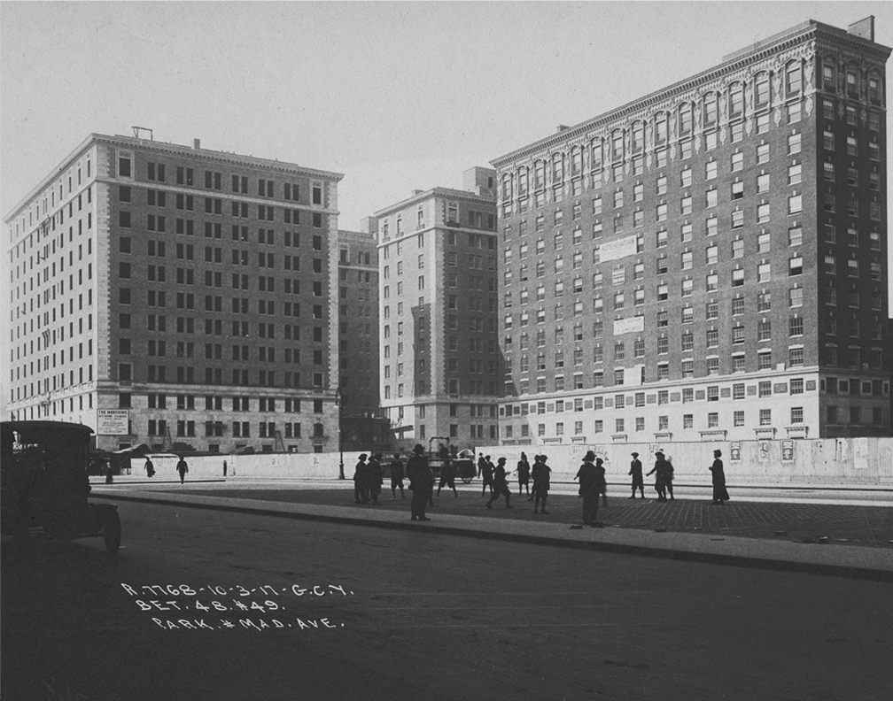 1: Marguery Apartments & Chatham Hotel,, Between 48th & 49th St., Park & Madison Ave., October 3, 1917. Collection of the National Museum of American History