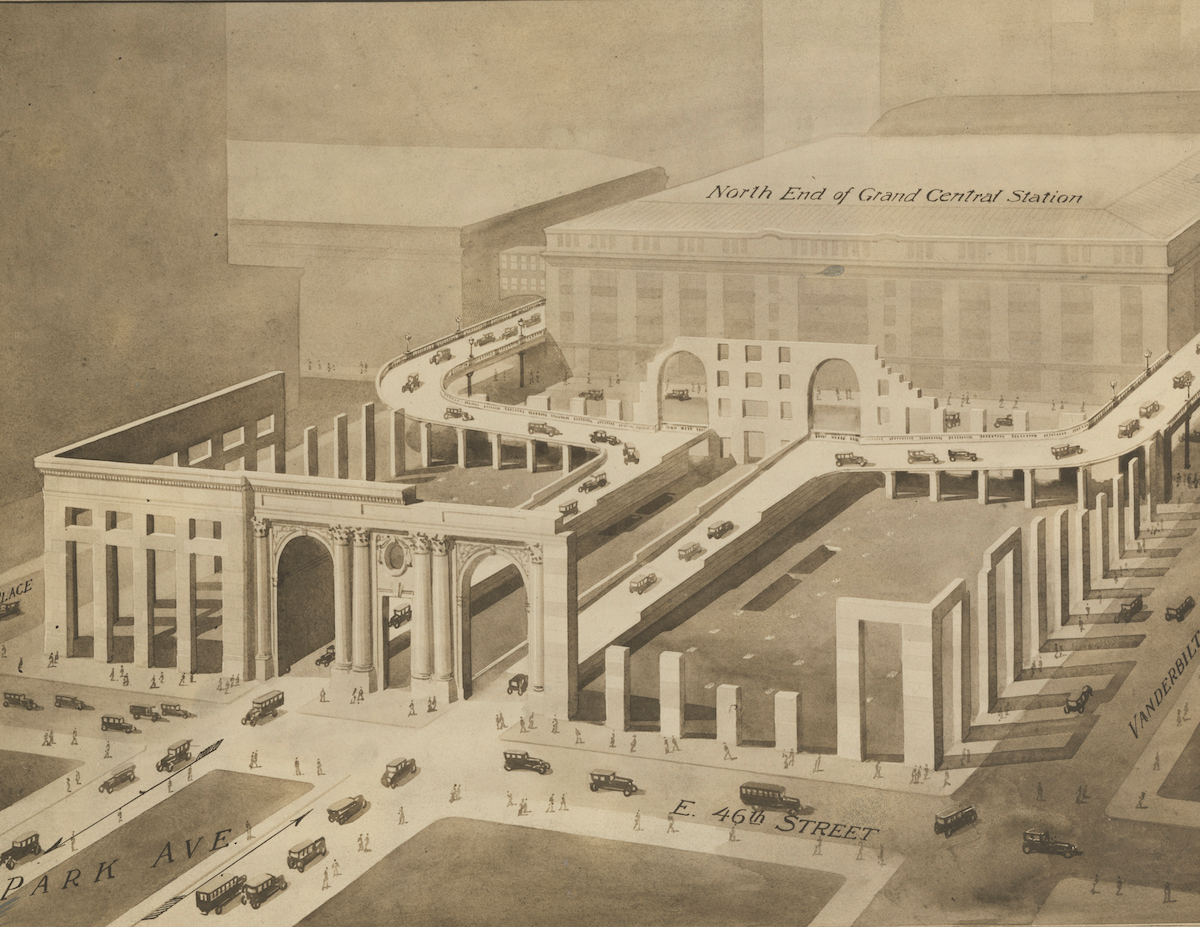 2: View of Grand Central Terminal, Looking North Up Park Avenue From 42nd St., c. 1920, photograph by Arthur Vitols, Byron Company, Museum of the City of New York.