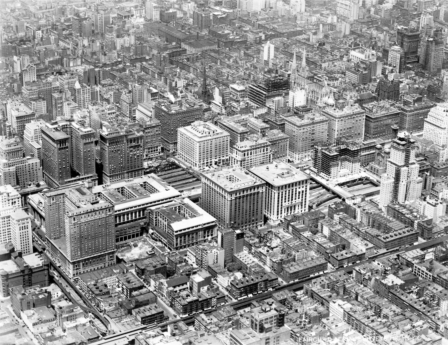 3: View of the Grand Central Terminal and the surrounding area, Fairchild Aerial Survey, 1923. Courtesy of the New York State Archives.