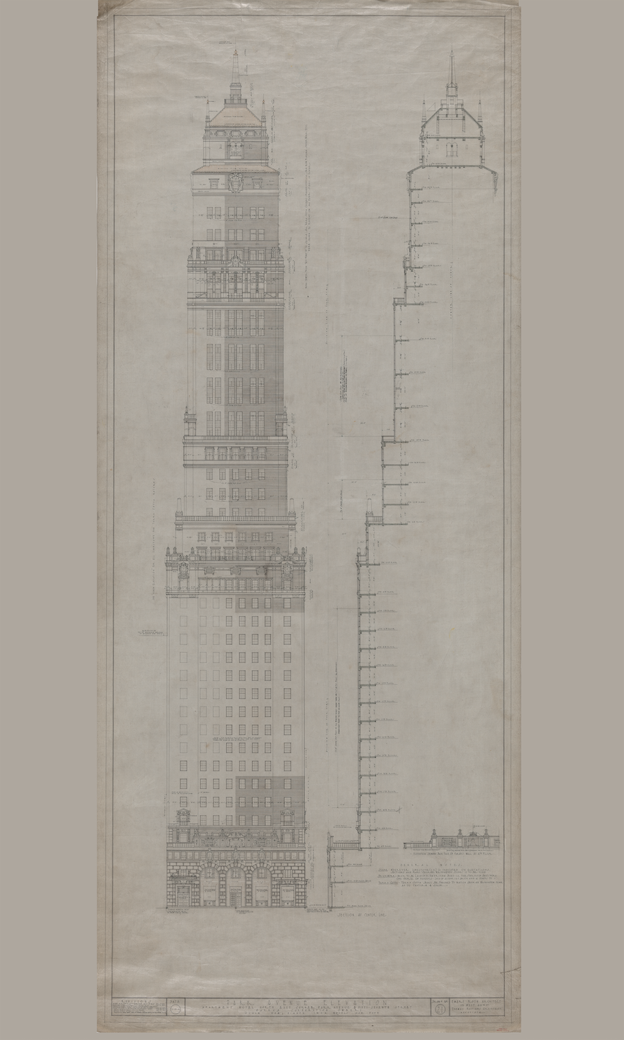 5: Reproduction of Ritz Tower, 1925, Emery Roth Architectural Drawings and Autobiography, 1907-1949, Roll A034.13, Avery Architectural & Fine Arts Library, Columbia University.
